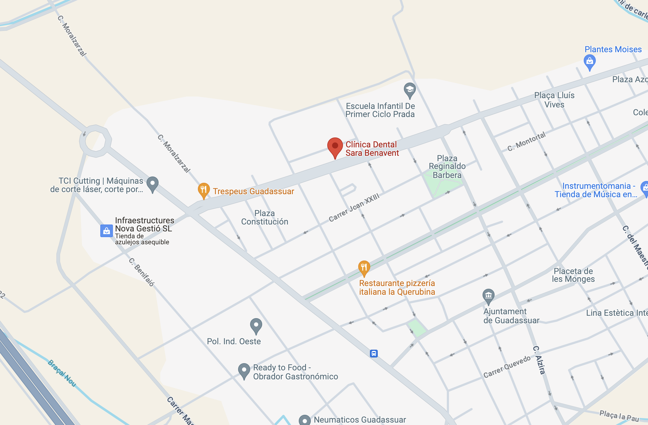 Nos encontrarás en la Avenida Diputación número 47 en Guadassuar (Valencia). Es fácil aparcar ya que hay plazas enfrente de la clínica y el acceso por el portal está indicado con el cartel de la clínica. Si prefieres llamar, Paola o Miranda estarán encantadas de ayudarte.